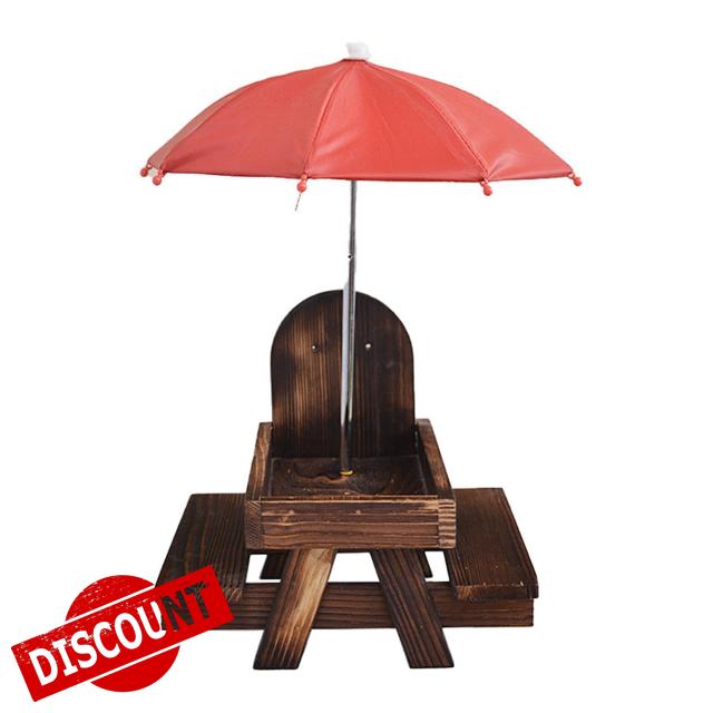 Niwugady Squirrel Feeder with Table Benches, Wooden Corn Cob Holder Feeding Table for Squirrel Chipmunk Picnic Table, Chipmunk Feeder with Solid Structure Burnt Ribbon Umbrella,18X21X18cm