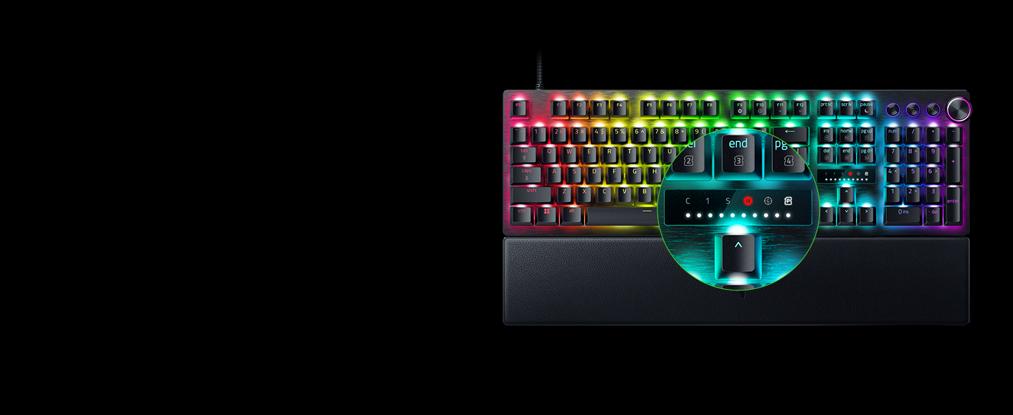 - Quick Onboard Adjustments via an LED array indicator: Make precise, on-the-fly adjustments to actuation height or Rapid Trigger sensitivity with the visual aid of an onboard LED array; Save the settings to the keyboard with no software required