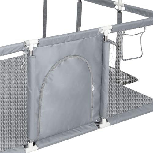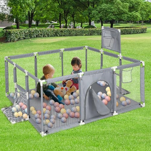 Taylor & Brown Baby Playpen 178 x 120cm Large Activity Toddler Fence Play Yard with 100 Ocean Balls, Basketball Hoop, Soccer Nets and Zipper Door Breathable Mesh 4-sided Indoor Outdoor (Grey)