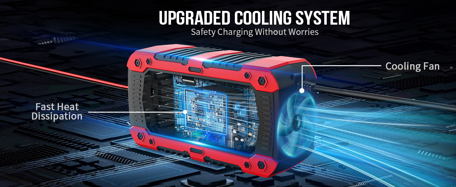 - 【AI Smart 8 Protection】: This 10amp car charger batttery Short circuit protection,Overcurrent protection,Overheating protection,Fireproof protection,Lowvoltage protection,Overvoltage protection,Revers Connecetion protection,Overcharge protection.Make sure you can use the battery charger safely.