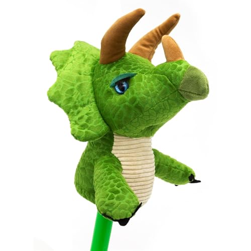 - DINOSAUR HOBBY HORSES | Our pack includes three engaging hobby horses – a Blue Pterodactyl, a Green Triceratops, and a Red T-Rex. Each one securely attaches to a sturdy stick and features a soft, plush dinosaur head that makes a delightful sound when squeezed. Perfect for imaginative play and dino-filled adventures!