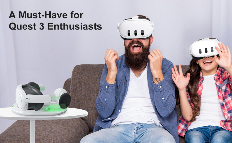 - All-IN-ONE Charging Design: Our charging dock is specifically designed for Meta Quest 3. And the charging dock station for Meta Quest 3 is quickly and easily charge a VR headset and 2 controllers simultaneously.NOTE:Charging with any third-party protective accessories(protective cover, eye mask) is not supported