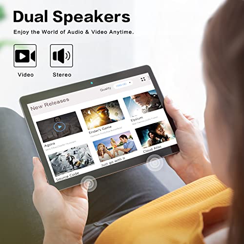 - 【All-new 10.1"" HD Touchscreen】 Vivid 10.1-inch tablet, 1280*800 IPS HD touchscreen, 178 degree wide viewing angle, bright display with more vibrant colors, superb picture quality. Supports wireless projection and is equipped with dual cameras (rear 5MP camera) & dual speakers. Gives you an outstanding audiovisual experience.