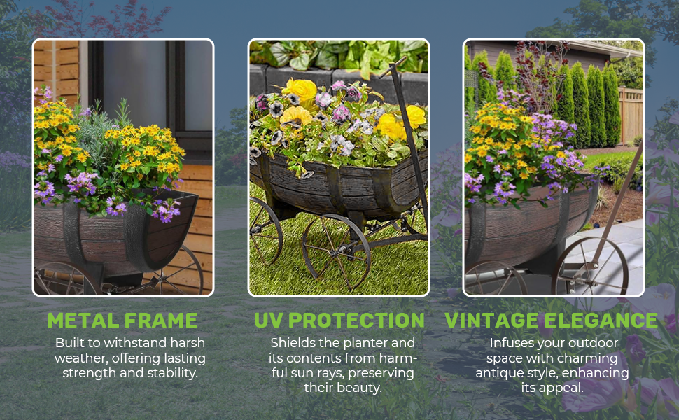 - : Infuse your garden with rustic charm using our My Garden Wagon Planter, crafted to add a touch of vintage elegance to your outdoor or indoor space.