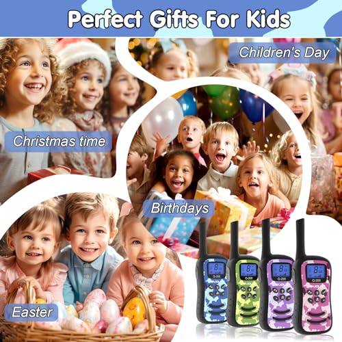 - 【Best Gifts Toys for 3-12 Years Old Boys Girls】 Our QUOLIX rechargeable walkie talkies is a perfect idea gift for 3-12 years old boys, girls. Great for both indoor and outdoor activities such as outdoor game, garden games, spring outing and summer camping, like hiking, camping, traveling. Brighten occasions with walkie talkie for kids surprises! Excellent color box design makes it a wonderful gift for birthday, Easter, Children's Day, Halloween and Christmas.