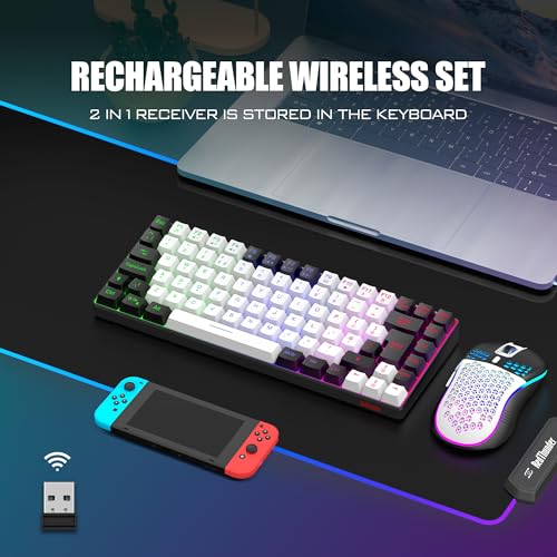 RedThunder K84 75% Wireless Gaming Keyboard and Mouse Rainbow Backlight UK Layout 85 Keys TKL Ultra Compact Mini Design Lightweight Honeycomb Gaming Mouse for PC Mac PS5 Office Gamers (White-Black)