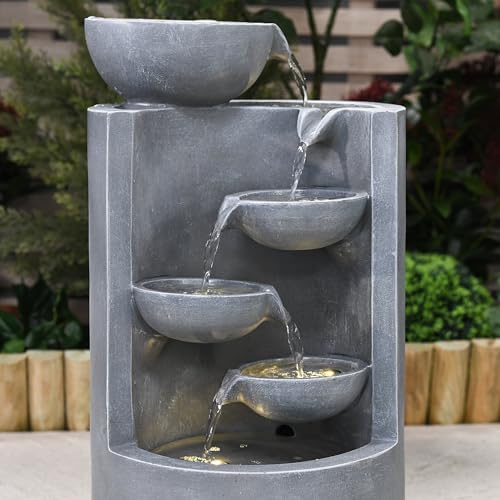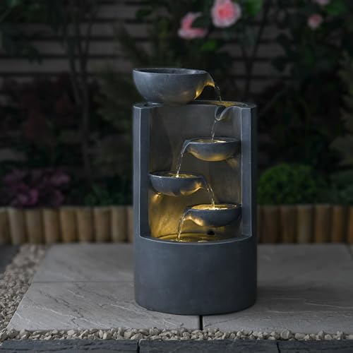 Serenity Four Bowl Cascading Water Feature With LED Lights 57 cm Tall Polyresin Stone-Effect Design Self Contained