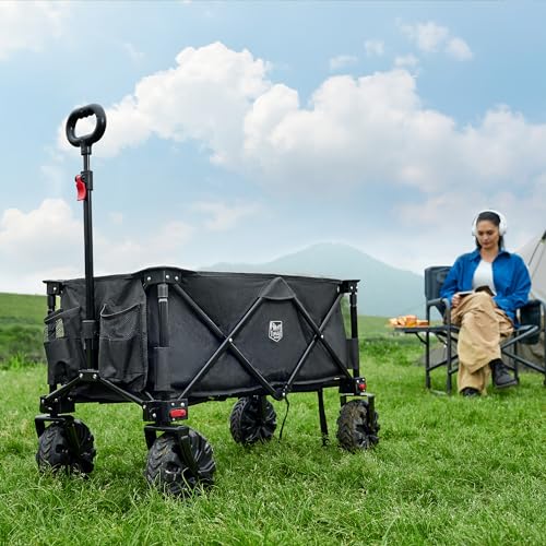 - QUICK SETUP: Easily open or fold the Timber Ridge folding wagon within seconds; refer to the instructional video in the last photo for detailed guidance
