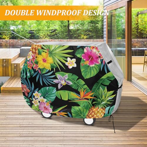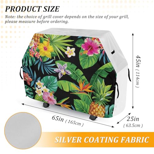 Barbecue Covers with Adjustable Strap Grill Cover for Weber,Brinkmann,Char Broil Waterproof,Windproof,Tropical Pineapple Gas BBQ Cover,165 x 63.5 x 114 CM