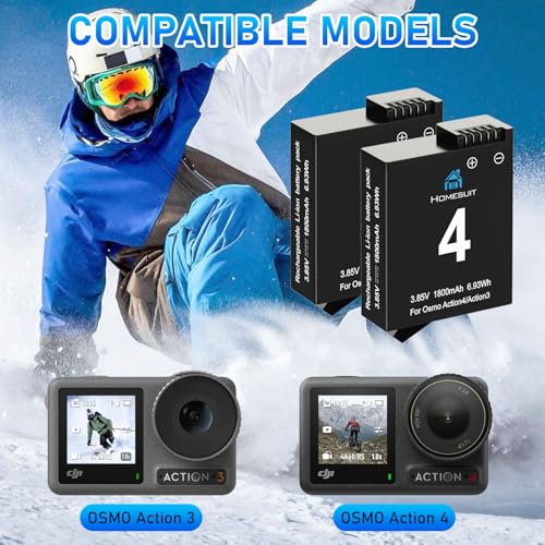 Homesuit DJI Osmo Action 4/3 Battery 1800mAh and USB Dual Slots Fast LED Charger Kit for DJI Osmo Action 4 / Osmo Action 3 (2-Pack)