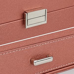 - ❤【Stylish & Clever Design】: The two small jewelry trays of the jewelry box can be moved left and right. The hidden space design under the jewelry tray can not only store a lot of jewelry, but also save space. The compartment of the drawer can be disassembled at will to meet the storage of your various jewelry.