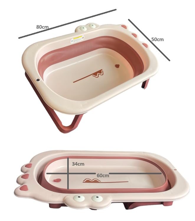 LADIDA Foldable Baby Bath Tub – Portable, Safe, and Spacious for Newborns, Infants, & Toddlers (Pink) with Space Saving Design & Easy Drainage