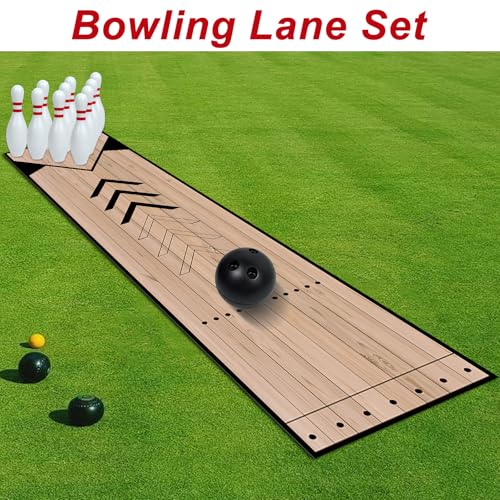 Mini Bowling Set, Indoor & Outdoor Home Bowling Game, Bowling Alley Playgame with Lane, Bowling Pins & Ball Game Set, Full Bowling Alley Games Set for Family & Friends (10 Pins, 2 Balls, 1 Lane Mat)