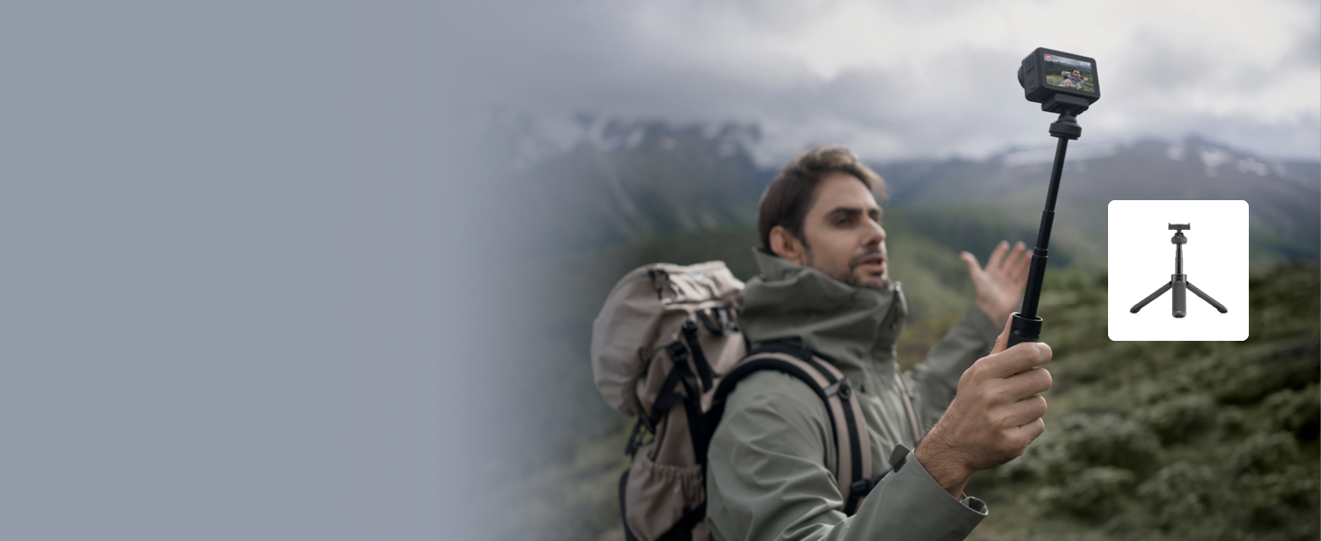 Equipped with a built-in 4900mAh battery, this handle provides approximately 7 hours of operating time for Action 5 Pro. It integrates camera control, magnetic quick-release, ball-joint adjustment, 3.5mm audio adapter, tripod support, and a 1/4″ thread hole for functional expansion. This eliminates the need for multiple accessories and meets various creative needs simultaneously. Compact and lightweight, it is easy to carry and grip.