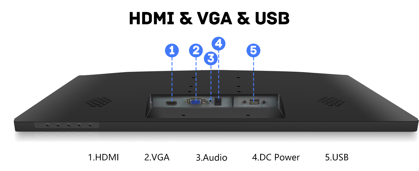 - USB/HDMI/VGA: The PC touchscreen monitor equipped with HDMI, VGA and USB Port(connect the USB to USB Cable for touch function). Easily connect to a varity of devices. Dual built-in speakers provide vivid surround sound, offers immersive viewing experienc
