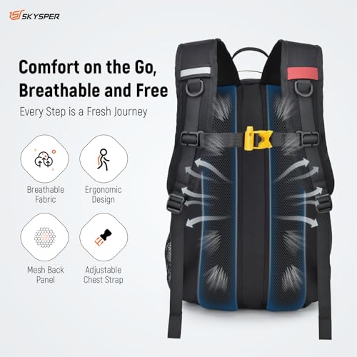 - UNMATCHED COMFORT: Picture yourself on a long hike, yet feeling as light as a feather. Our lightweight backpacks feature soft mesh pads and shoulder straps to ensure air circulation and heat dissipation for maximum comfort even on long hikes. Adjustable chest straps help stabilize the back, and reflective strips enhance visibility in low light for added safety.