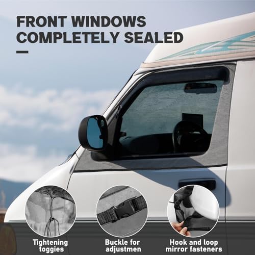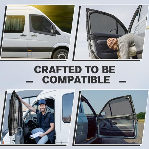 Yahenda Van Window Bug Screen 47 x 33 Inches Sun Protection Net Breathable Mesh Car Window Covers Car Shades for Front Windows Magnetic Suction Ventilation Privacy Protection for Van SUV