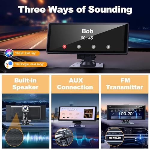 10.26' HD IPS Screen Apple Carplay for Car with 4K Dash Cam, Portable Car Radio with 64G TF Card, Android Auto, Backup Camera, Loop Recording, Bluetooth, GPS Navigation, Mirror Link/Mic/TF/USB/AUX
