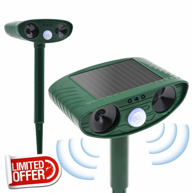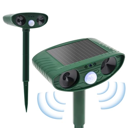 - ✴️【IPX4 Waterproof and Solar Powered】- This cat repellent is made of high-grade ABS material with sturdy construction and beautiful craftsmanship. There is a solar panel on the top of the device, you can use solar energy to charge the battery. The ultrasonic animal repellent is designed with IP44 waterproof, you can use it in any bad weather to keep your farm, garden and lawn free from harmful animals.