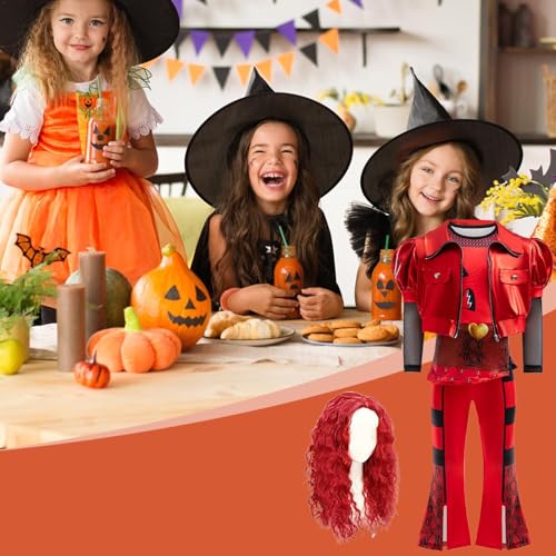 descen.dants Rise Of Red Costume, Red Descendant Costume With Red Wig Red descen.dants Costume, 4 Cosplay Kids Movie Outfits Kids Dress Up Halloween Costumes For Girls 5-12 Years Old