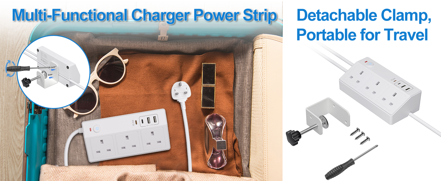 - 【Office Organizers for Desk】: Desk power strip with clamp and USB charger mount to the desk surface with an edge mount bracket for a secure hold. it clamps onto the back or side of your desk for a semi-permanent mount that won’t be knocked back into your nest of cords.