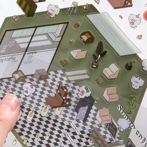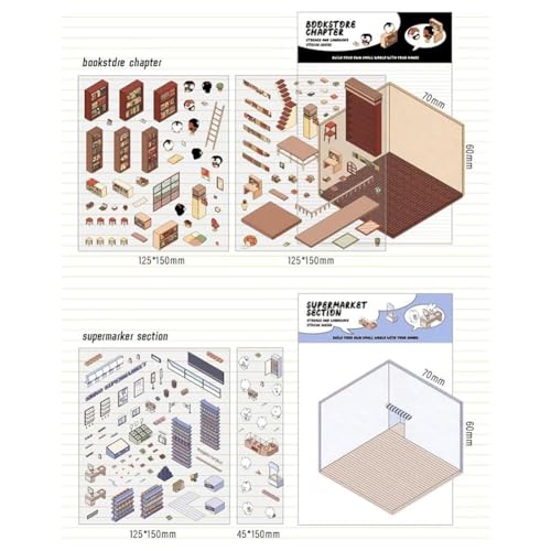 DIY 3D House Stickers, Fun Sticker Scenes Make Your Own Stickers Supermarket Coffee Shop Restaurant Bookstore, Stickers 3D for Adult Kids Relief Stress Pass The Time