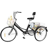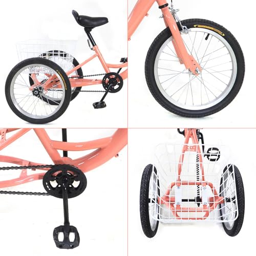 - BASKET FOR CONVENIENT STORAGE: Equipped with a large rear basket made from iron material, this tricycle offers ample storage space for groceries, supplies, toys, camping items, and more. The fine welding and large opening of the basket prevent deformation and make it easy to fetch items whenever needed.