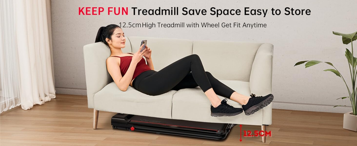 - 【NO Assembly & Space Saving Design】This 3-in-1 portable treadmill arrives fully assembled and can be used right out of the box, fold it up and walk away in two easy step,perfect for home,apartment,office use. Size: 125cmL*62cmW*12.5cmH.