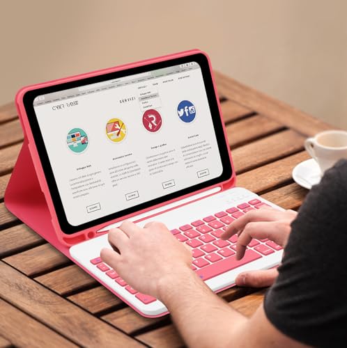 Lielax for iPad 10th Generation Case with Keyboard (10.9″, 2022), case with keyboard for ipad 10.9 inch, Detachable Wireless Bluetooth Keyboard Case for ipad 10th Generation 2022 – Pink
