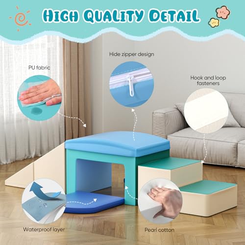 - Easy Assembly & Disassembly: The climbing toys for toddlers can be securely connected with hook and loop tape, so you can easily (dis)assemble and store them. They guides children to create and enjoy a whole fun of new combinations. Note: Clean with mild soap and water.