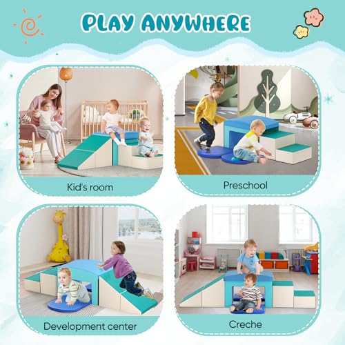 Lischwert Baby Soft Play Set, Soft Play Equipment for Toddlers, Climb and Crawl Foam Play, Kids Activity Play Toy, Multi-colored for Baby Toddler Preschooler Indoor Play Equipment (Blue-6-piece set)