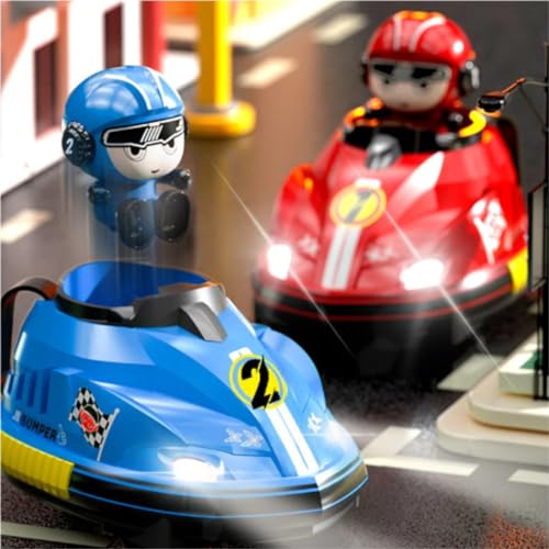 - 2PCS RC BUMPER CARS : toddler remote control car comes in a pack of 2 pieces, which can be shared with friends. It is an excellent toy for young children to develop social skills, logical thinking, and direction while enjoying the fun of competitions.The RC boy bumper car toy includes 2 cartoon racing cars, 2 detachable characters, 2 remote controls,1 instruction. Perfect for children aged 4-10 and above,helping adults cultivate parent-child relationships.