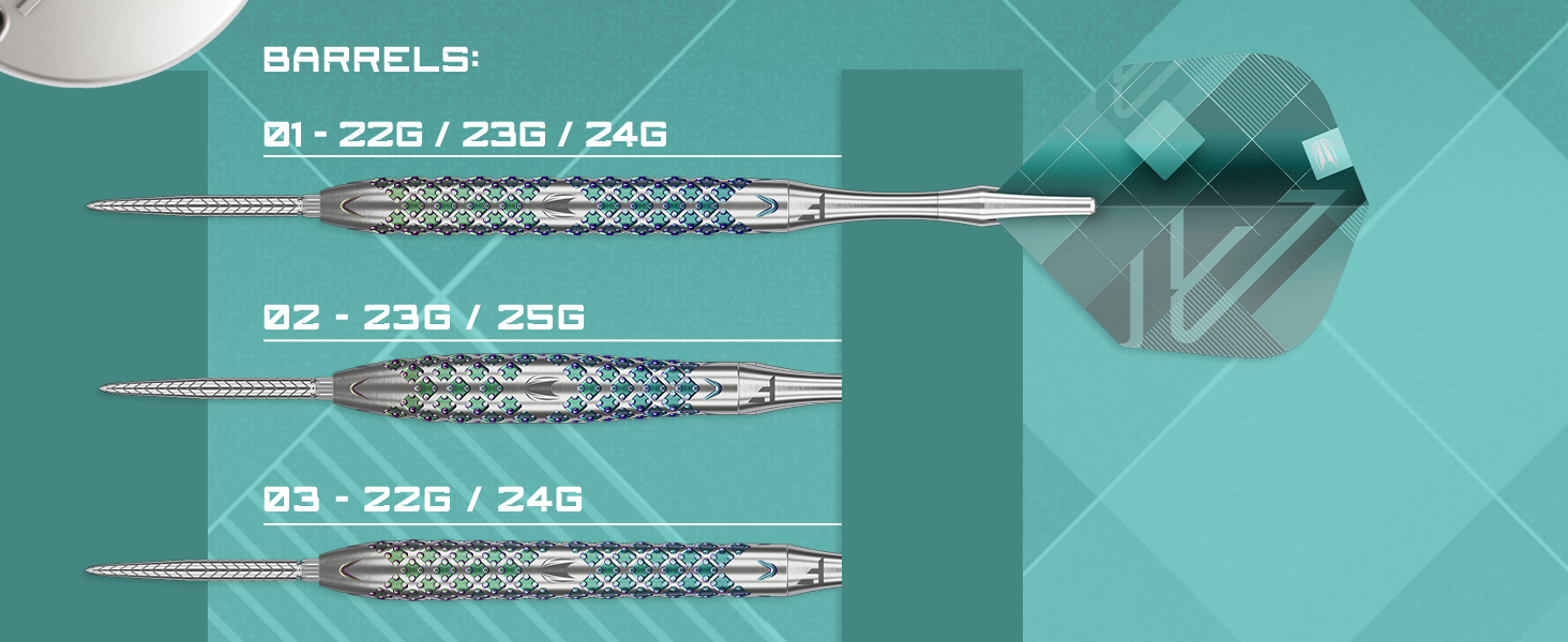 - 90% TUNGSTEN DARTS BARREL 01: The Rove 01 90% Tungsten straight barrels feature precision milling and are coated with a striking green Diamond-Like Carbon finish. The detailed texture and design elements are integrated to offer a superior grip and control. The straight barrel offers a consistent grip along the entire length of the barrel, providing a balanced feel and accommodating various finger grip styles (Barrel 01 – 22G Diameter: 6.5mm, Length: 52mm).