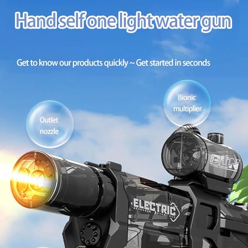 - 【Cool LED Lighting Effects】Built-in lighting effects that light up when the water is shot, creating a lighting effect that makes nighttime water features interesting and exciting; Experience the thrill of battle with stunning LED light effects; Integrated LED lights sync with the water jets to provide a visually exciting and immersive gaming experience, allowing you to play at night without worrying about not being able to see clearly