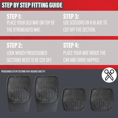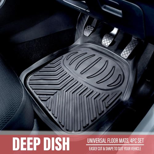 Xtremeauto Deep Dish Rubber Car Mats Universal Fit – 4X4 Rubber Car Floor Mats (Front & Rear) Rubber Car Mat Heavy Duty Thick Rubber For Cars, Vans, Truck & SUV, All Weather Waterproof Rubber Mats