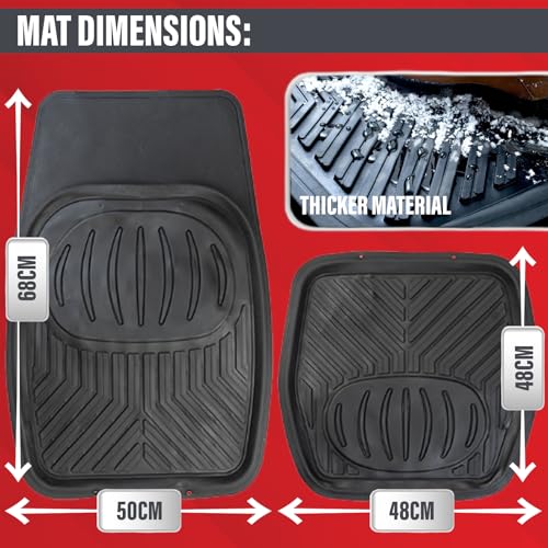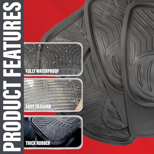 COMPLETE PROTECTION – Set of 4 deep dish car mat liners designed for 4×4 off-road vehicles, made from heavy-duty, non-slip rubber for total coverage. These mats are waterproof and perfect for all weather conditions, providing comprehensive protection for cars, vans, SUVs, and trucks.
