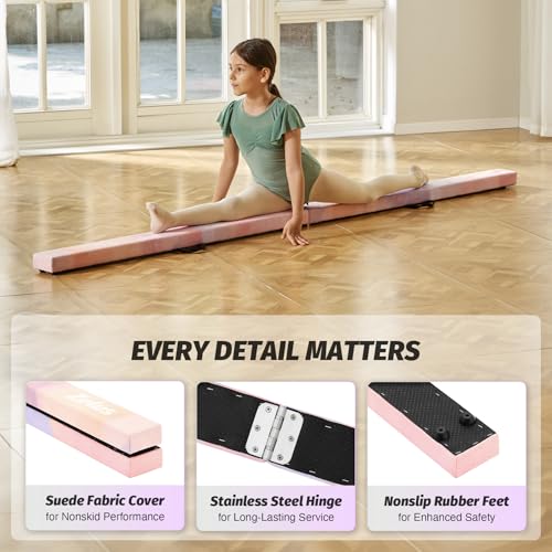 - : Cushioned with soft EVA foam and topped by a gentle suede layer, our kids balance beam offers a cozy touch that'll keep your young gymnasts happily practicing away