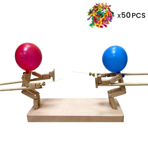 2-Player Balloon Bamboo Man Battle Game – Boom Boom Balloon Game, Handmade Wooden Fencing Puppet Set for Exciting Balloon Battles, Fast-Paced Party Game for Kids and Adults (With 100 Balloons)
