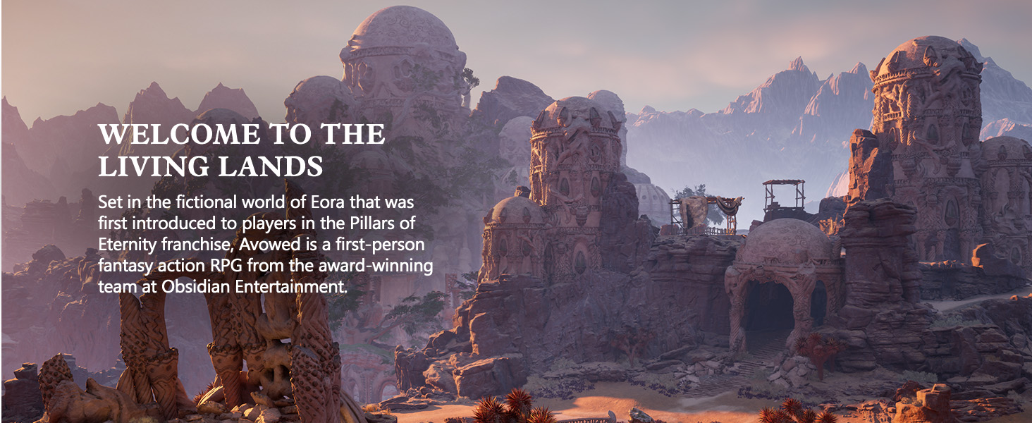 Premium Edition SteelBook includes: Avowed base game, up to 5 days early access, Avowed SteelBook®, Living Lands map, two Premium Skin Packs, and access to Avowed Digital Artbook & Original Soundtrack. Welcome to the Living Lands, a mysterious island filled with adventure and danger. Set in the fictional world of Eora that was first introduced to players in the Pillars of Eternity franchise, Avowed is a first-person fantasy action RPG from the award-winning team at Obsidian Entertainment. You are the envoy of Aedyr, a distant land, sent to investigate rumors of a spreading plague throughout the Living Lands—an island full of mysteries and secrets, danger and adventure, choices and consequences, and untamed wilderness. You discover a personal connection to the Living Lands and an ancient secret that threatens to destroy everything. Can you save this unknown frontier and your soul from the forces threatening to tear them asunder?