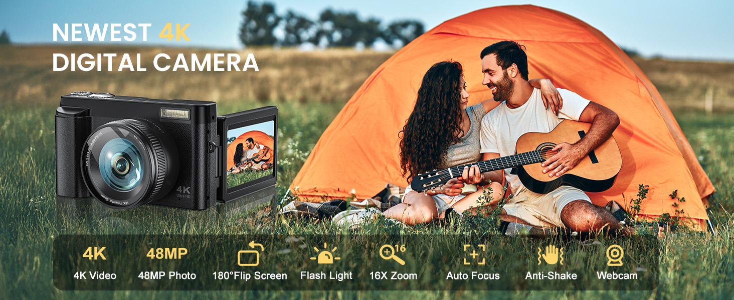 - 【Ultra HD 4K Camera for Vlogging】This digital camera uses the latest & advanced CMOS chip, can capture ultra HD 48MP images and record HD 4K resolution video, there is also a built-in flash to help you take high quality pictures even in low light & dark settings, ideal for indoors outdoors.6-axis anti-shake helps to minimize camera blur, giving you steadier shots while shooting sports, portrait, or distant scenery and without the need for any post-shoot editing.