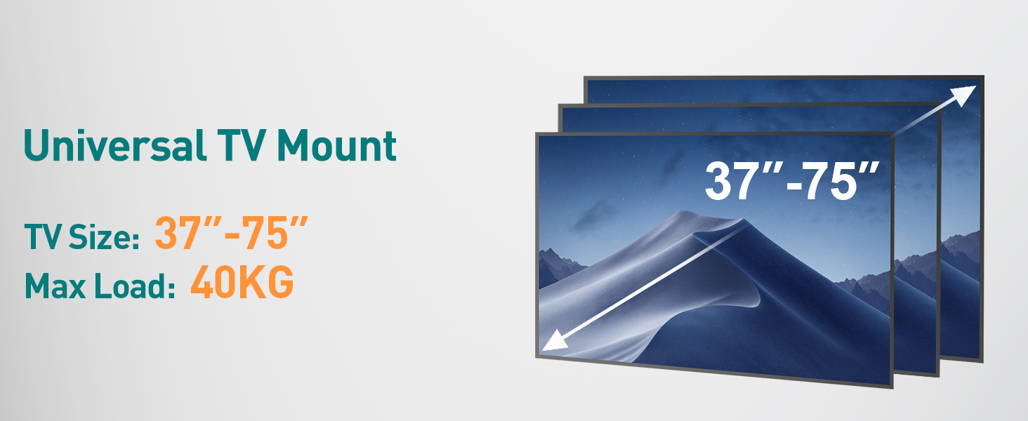 - Compatibility – This Large Tilt TV bracket fits for most of 37-75 inch flat and curved TVs with VESA from 100x100mm to 600x400mm up to 40KG. It is compatible with LG Sharp Samsung Sony HISENSE Toshiba TCL Philips Thomson RC , ect. (NOT for drywall alone installation.)