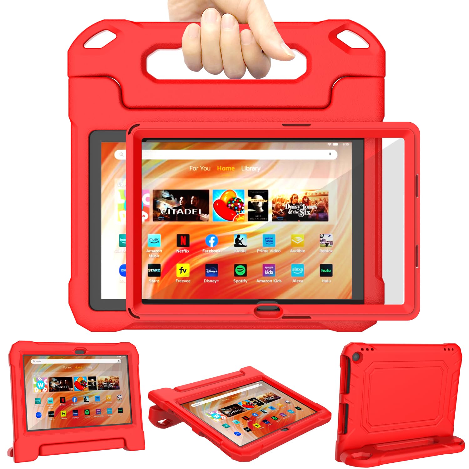 Kids Case for 10.1 inch Tablet Built-in Screen Protector, Not Fit XiaoMi iPad Samsung, TrendGate Lightweight Shockproof Cover with Handle Stand for 10.1'' Tablets – Red