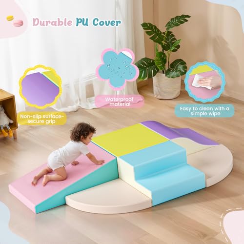 Krovtoy Soft Foam Blocks Climb and Crawl Activity Play Set for Baby Toddler Preschooler Indoor Play Equipment Learning Toys Multicolor (Sponge building block set-Macaron)