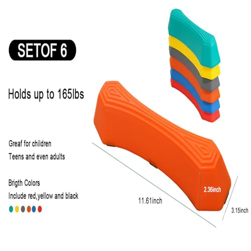 Lifemaison 6pcs Kids Balance Beam,Balance Stepping Stones with Non-slip Textured Surface,Rainbow Sensory Balancing Stones Stackable Outdoor Indoor Obstacle Course for Toddler,Balance River Stones