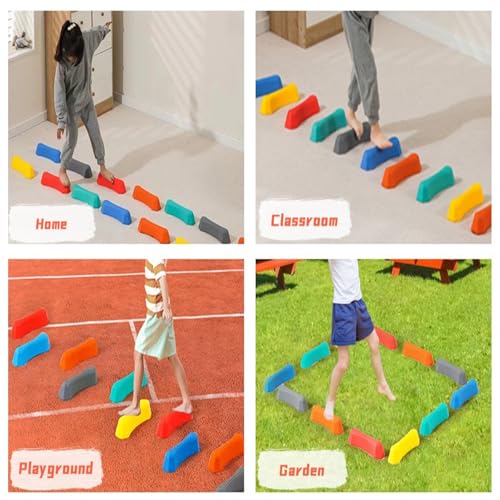 - Multi Fun Way to Play:This toddler balance stones for kids 3-8 year old can be used in homes, classrooms, backyard, park and more. Balance stones can be stacked and stored without taking up space. Ideal kids playground game for indoor & outdoor. As the obstacle course for kids, children can walk, stand, jump or climb on the kids stepping stones. This toy provide a variety of ways to play the game, children also can use their imagination to create more fun games!