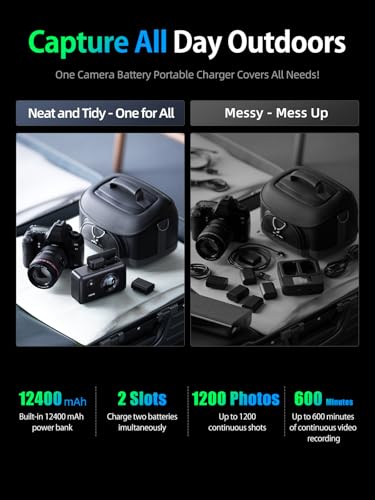 - Enhanced Charging Speed: The dual charging capability is a real time-saver, enabling you to charge two batteries at once—ideal for long shooting sessions. It fully charges two EN-EL15C batteries in just 3 hours, offering a 58% faster charging speed compared to other chargers.