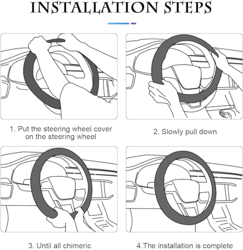 - Easy Installation: The steering wheel cover is designed for easy installation, requiring no tools. It can be fitted in minutes,also can be heated with a hair dryer to extend and then installed.Providing comprehensive protection for steering wheel