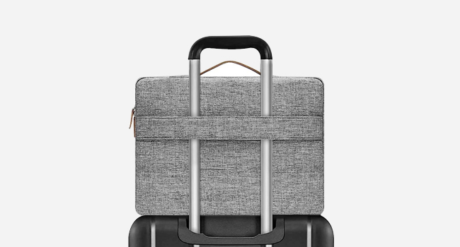 - Considerate design is the back trolley suitcase belt for ease use during business trip. It is really convenient for your happy journey to any where. Slim and lightweight; does not bulk your laptop up and can easily slide into your briefcase, backpack, or other bag. This protective carrying sleeve case cover bag with handle and pockets is ideal for you to take your laptop out.