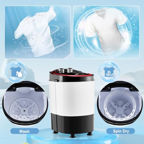 - Compact & Humanization Design: Perfect size for doing a load of clothing at one time, suitable capacity laundry. Its compact and lightweight design allows you to move and transit the machine to anyplace; Easily to fit in most place such as bathroom or closet. This is your ideal washing machine choice for such as dorms, college rooms, apartments, RV’s, camping, traveling and more.