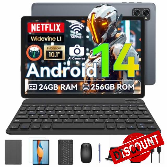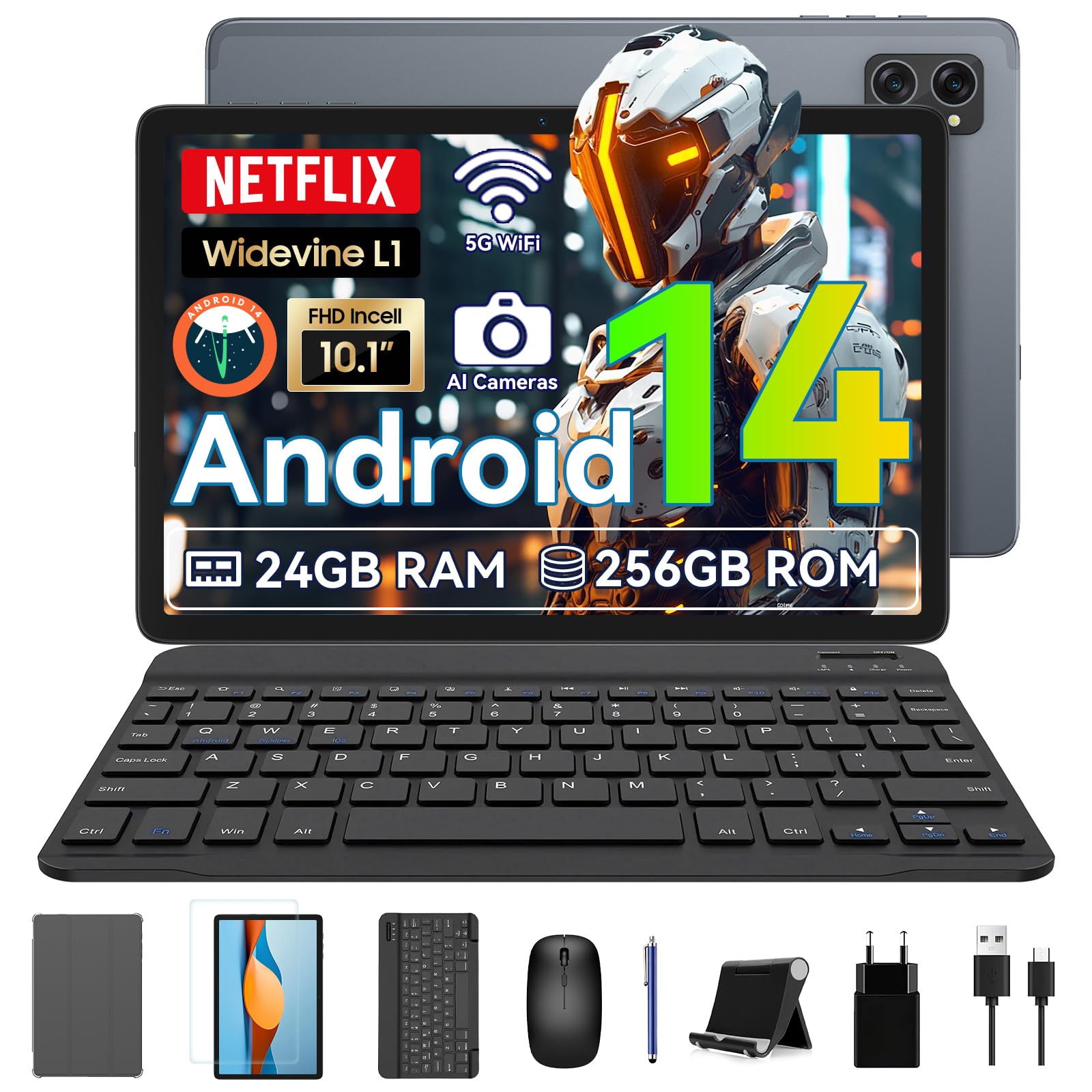 Tablet 10 Inch BESSTAB A20 Android 14 Tablets,24GB +256GB/2TB Android tablets,5G WiFi,Gaming Tablet Octa-Core Processor,5000mAH,5MP+8MP,GPS,Tablet With Pen,Keypads,Mouse, Case,2-Year Warranty-Grey